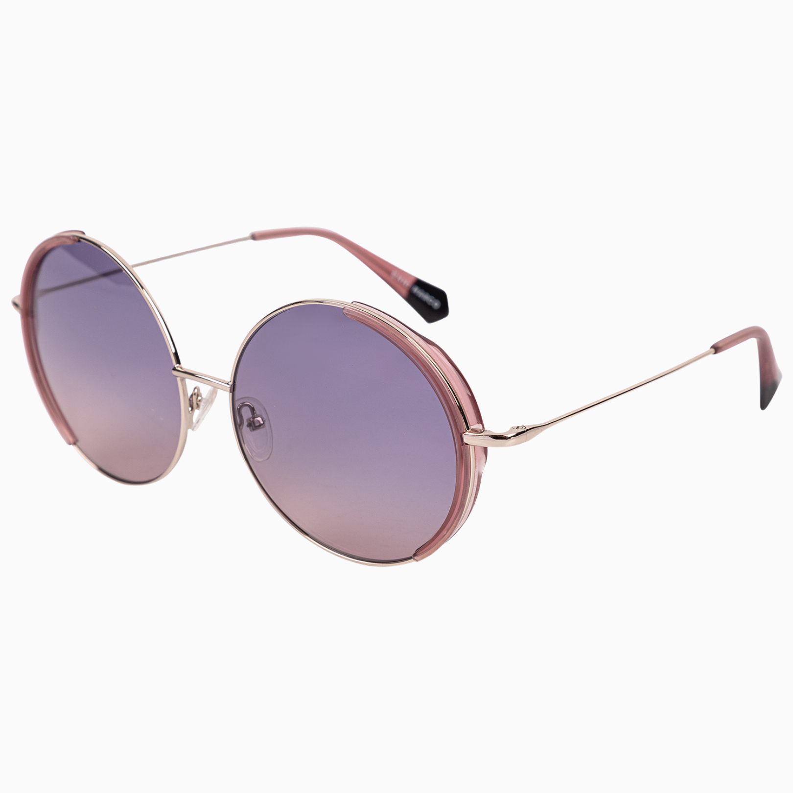 Металлическая, Крупная, круглая форма очков, с комбинированным деталями из пластика. Сочетание светло- розового декора и слегка фиолетовой линзы, преподносит модель как воздушный и невесомый аксессуар